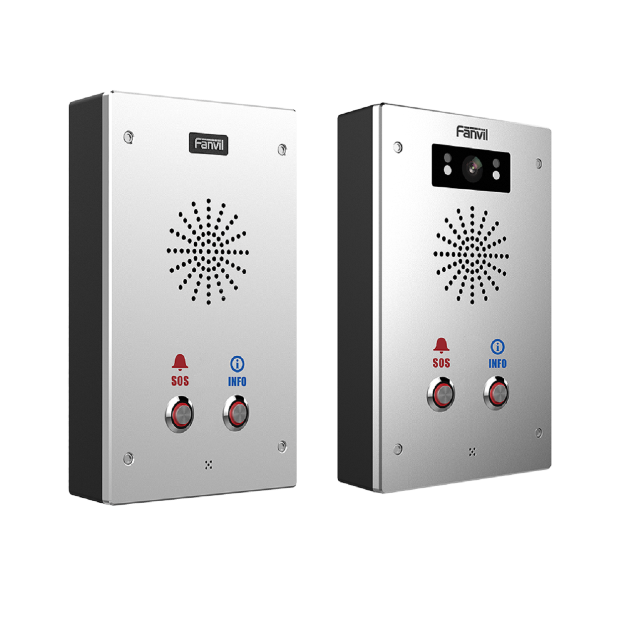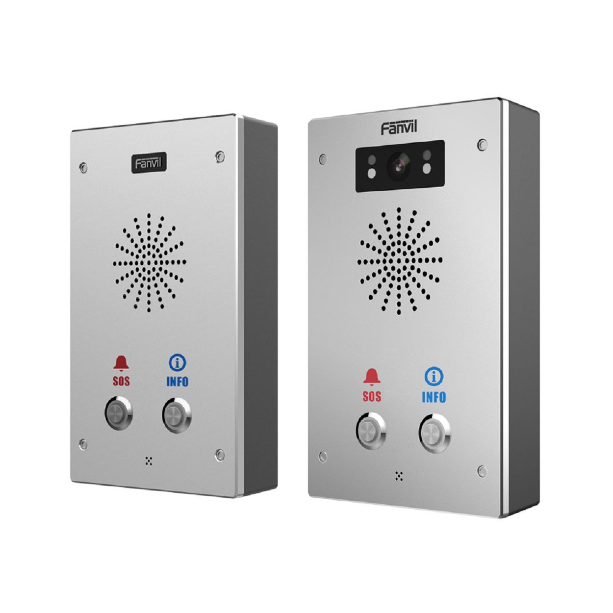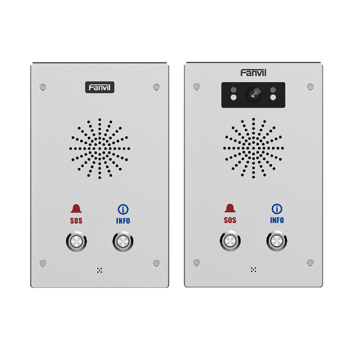 Fanvil i16S / i16SV 是一款外觀精緻,功能強大,集智能安防、音視頻對講和廣播功能於一體的SIP門禁對講產品。 i16S-02P / i16SV-02P 預設配備2個快速按鍵,支援壁掛式安裝,防護等級符合IP65標準,可有效防塵防潑水防暴,適用於多種室內外場景,可提供使用者優質的通訊對講服務。